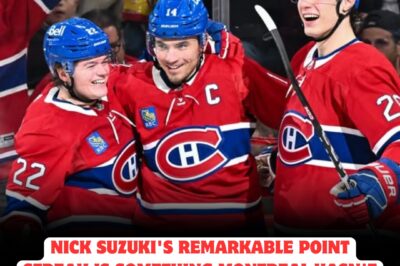 NICK SUZUKI SHATTERS RECORDS WITH A HISTORIC POINT STREAK, IGNITING MONTREAL IN A WAY NOT SEEN FOR THREE DECADES—THE CITY IS BUZZING AS FANS WITNESS AN EXPLOSIVE PERFORMANCE THAT DEFIES BELIEF AND REWRITES THE LEGENDARY HISTORY OF THE CANADIENS WITH EVERY GAME!