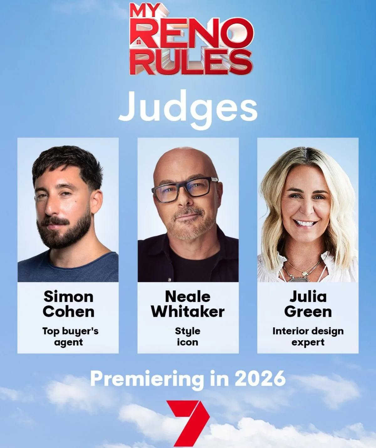 Produced by MasterChef creators Endemol Shine, My Reno Rules will feature four teams of renovators competing on two neighbouring houses, with celebrity vet Dr Chris Brown stepping in as solo host.
