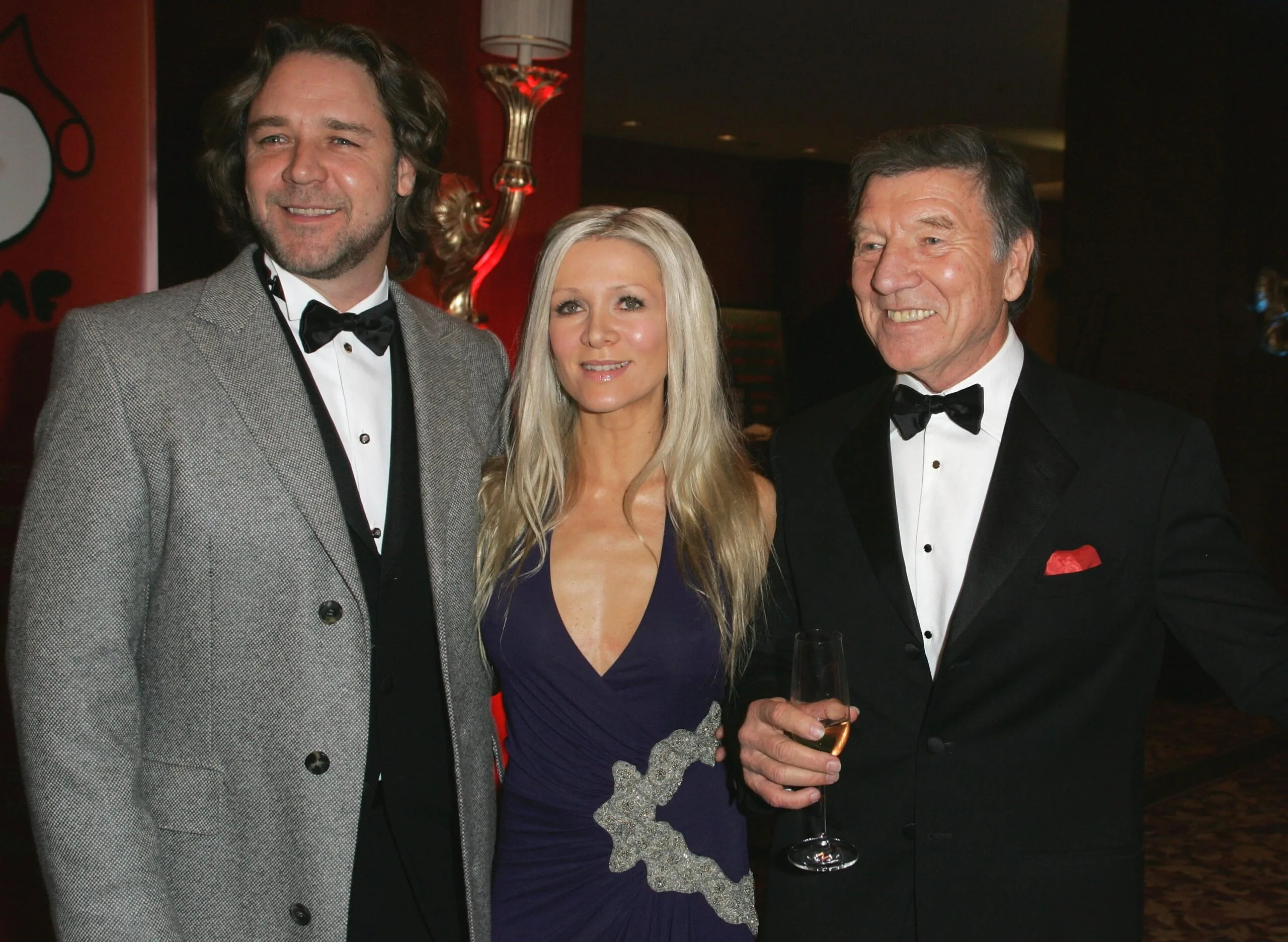 SYDNEY, AUSTRALIA – JULY 14: (L-R) Australian actor Russell Crowe, wife Danielle Spencer and Don Spencer attends The Music for Children Ball 2007 at the Four Seasons Hotel on July 14, 2007 in Sydney, Australia. (Photo by Sergio Dionisio/Getty Images)