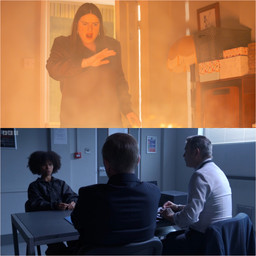 Zoe in a flaming houseZoe’s trapped in a deadly blaze (Credit: BBC)