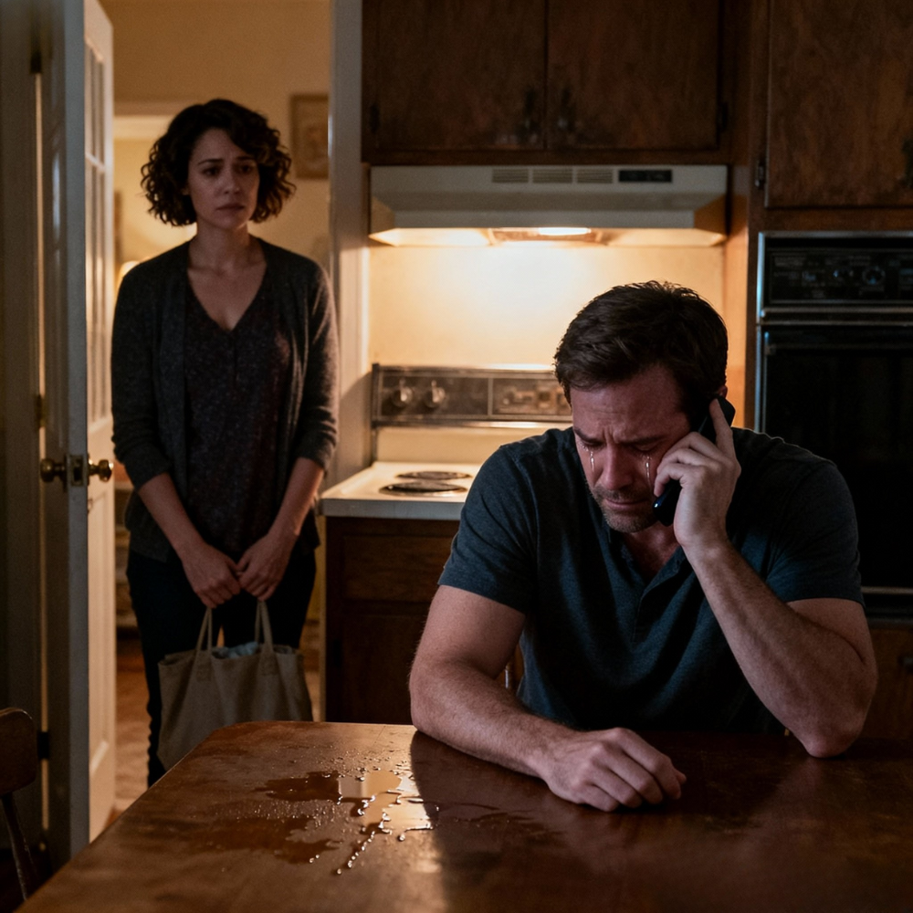 I froze in the entryway, keys dangling in my hand, heart hammering. The sobs came from the kitchen. Each step toward the doorway felt like wading through molasses, my instincts screaming to run to him and to hide all at once. I peeked around the corner. There he was, slumped at our oak table, the afternoon light catching the tears streaming down his face like shards of broken glass. His phone was pressed to his ear, his voice a shattered whisper. “I know, baby,” he said, the word slicing through me like a blade. “I’m so sorry, baby.”