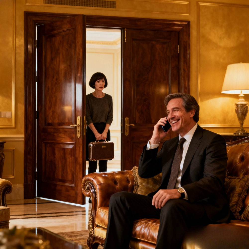 The doorknob burned like ice under my trembling fingers, but it wasn’t the cold that froze me—it was his voice, drifting down through the polished oak ceiling of our Manhattan penthouse. Thomas, my husband of eight years, the man I’d built my world around, laughed with a lightness that sliced through me. “Yeah, she’s on her way to the airport now. The naive fool actually bought the Paris story. Can you believe it?” His laughter, once the soundtrack to my happiest moments, now coiled around my heart like a snake. I stood in the foyer of our Riverside Drive home, my designer luggage still clutched in one hand, my forgotten passport the only reason I hadn’t boarded that flight to a supposed business conference in Paris. A simple mistake. A catastrophic one.