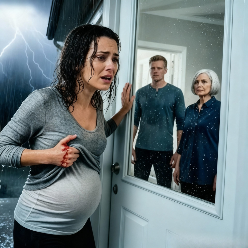 Thomas turned away first. Diane’s shadow lingered a beat longer, then the living room light clicked off. Darkness swallowed everything except the lightning that lit up my trembling, eight-months-pregnant body collapsing on the wrap-around porch.